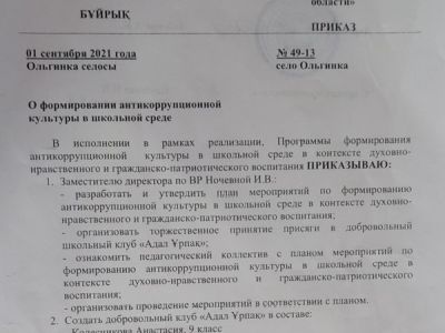 В рамках празднования Международного дня борьбы с коррупцией 9 декабря 2022 года старшей вожатой КГУ «Ольгинская основная школа» Махмутовой К.Д и членами клуба «Адал Ұрпақ» была проведена беседа на тему «Нет коррупции». В ходе беседы учащиеся внимательно слушали выступающих, отвечали на вопросы.