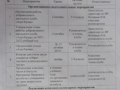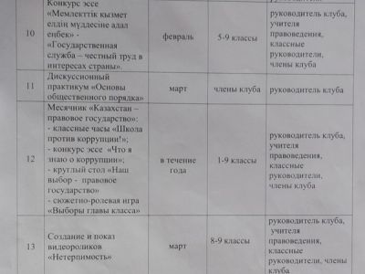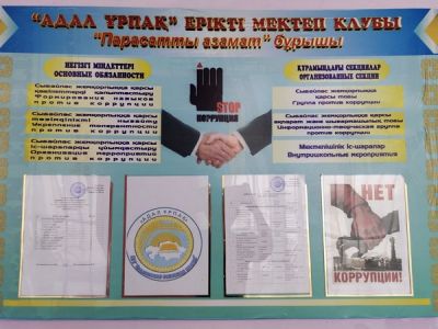 Основными целями и задачами добровольного школьного клуба «Адал Ұрпақ» является формирование антикоррупционной культуры в школьной среде, поощрение инициатив по укреплению нетерпимого отношения к коррупции, участие в организации мероприятий антикоррупционного характера.