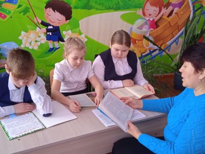 Мектеп кітапханасында 5-6 сынып оқушыларымен