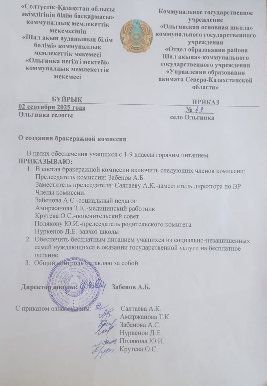2024 жылдын 10 кыркуйегінде мектеп асханасында бракераж комиссиясының мүшелерімен бөлігтерді өлшеп, дәмін татты. Тексеру барысында: тағамдар бекітілген мәзірге сайкес келеді. Бөліктер мәзірлерге және оқушылардың жас қажеттіліктеріне сейкес келеді.